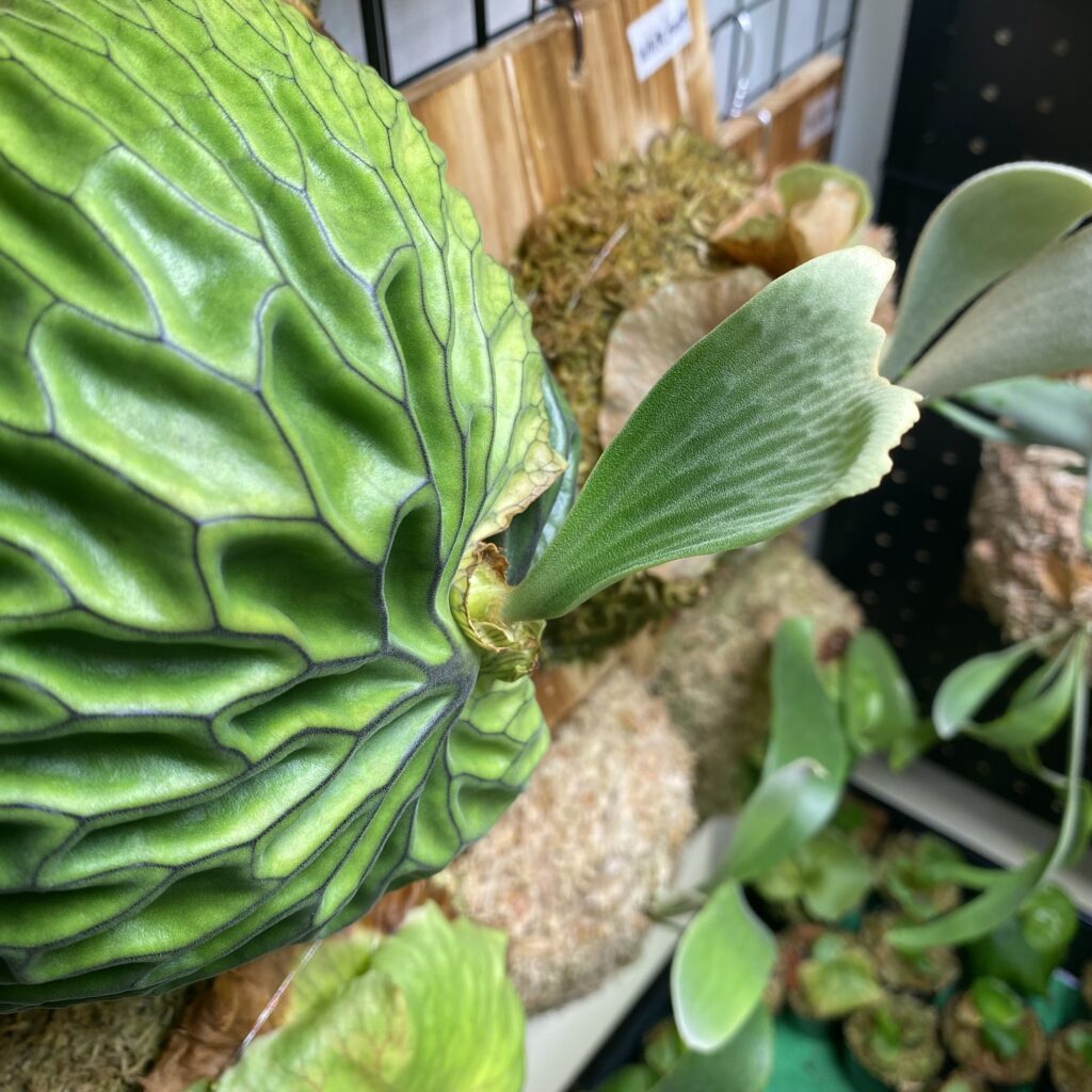 現地では貯水葉の隙間にアリを住まわせて、有機物を運んでもらい共生しているらしい。